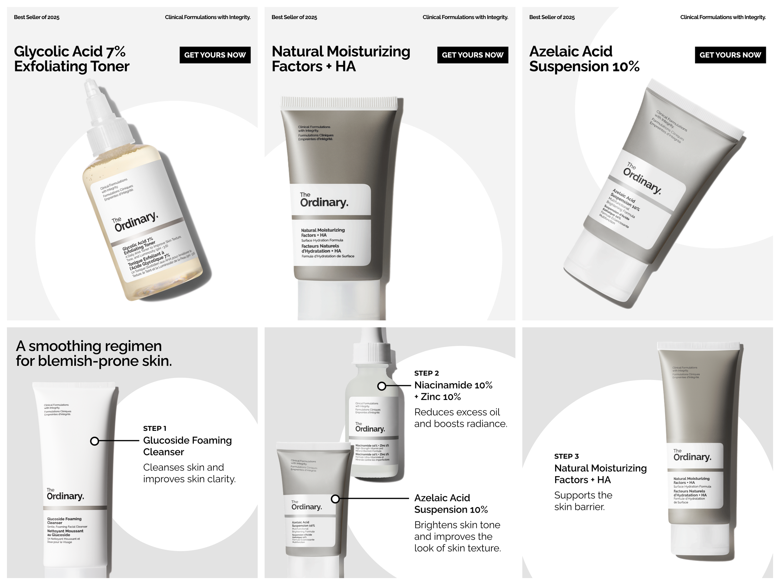 the Ordinary is no-nonsense, no-frills skincare brand known for its clinical approach, ingredient transparency, and accessible pricing.